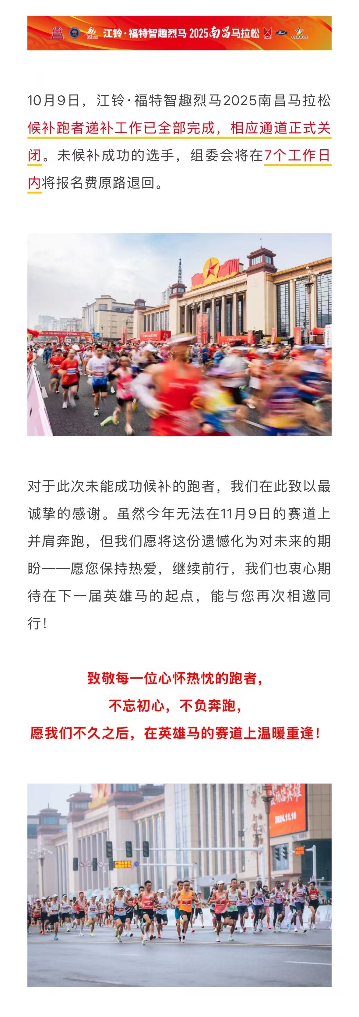 候补截止|2025南昌马拉松候补跑者工作于10月9日正式结束!