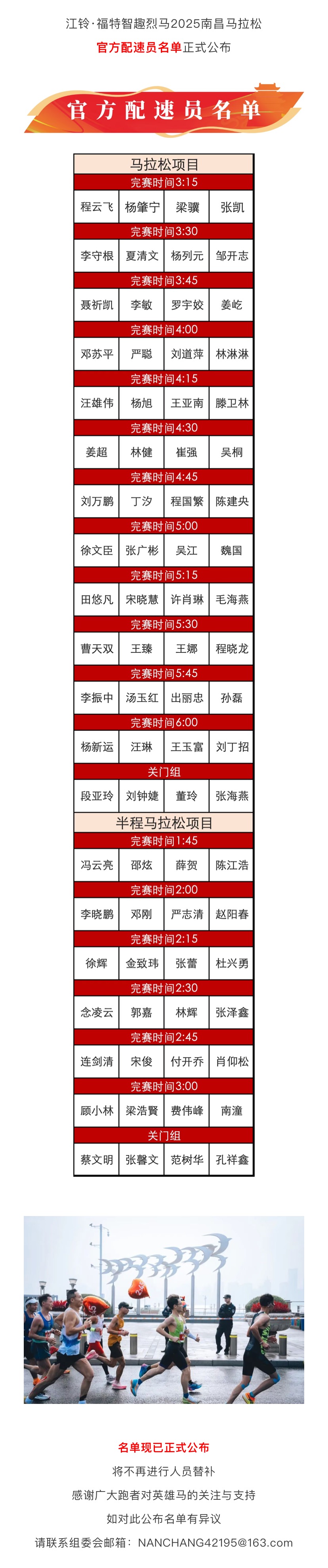 名单公布|2025南昌马拉松官方配速员名单公布