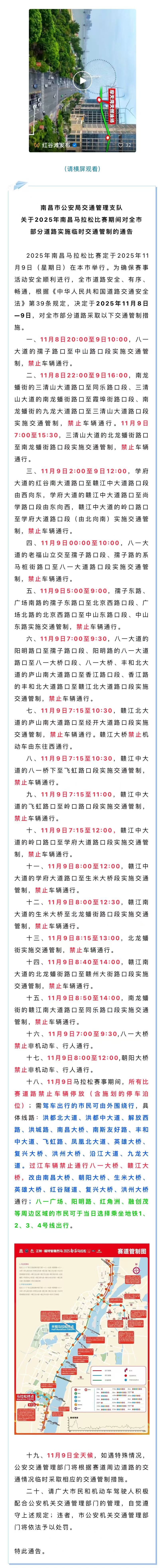 关于2025南昌马拉松比赛期间交通管制的通告