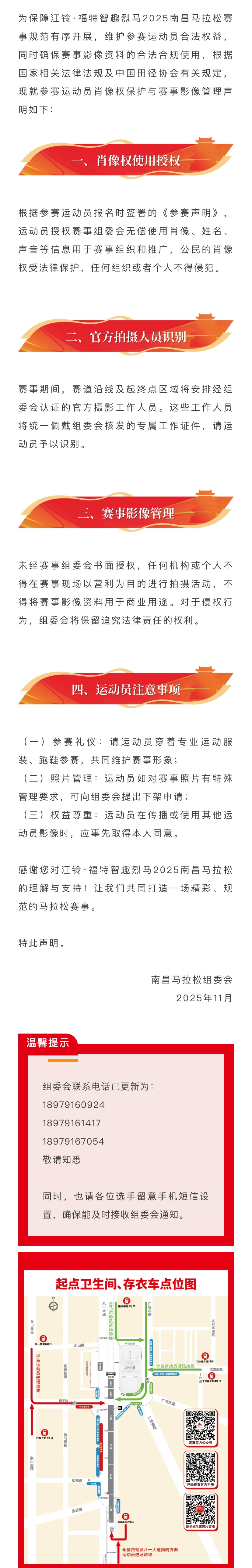 关于2025南昌马拉松参赛运动员肖像权保护与赛事影像管理的声明