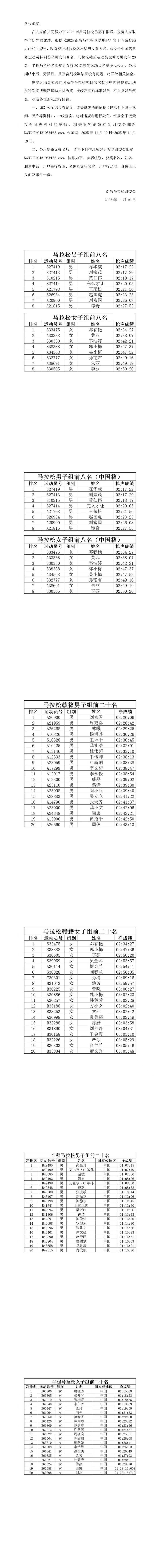“郑州银行杯”2025郑州马拉松 半程马拉松项目 男女前二十名成绩公示
